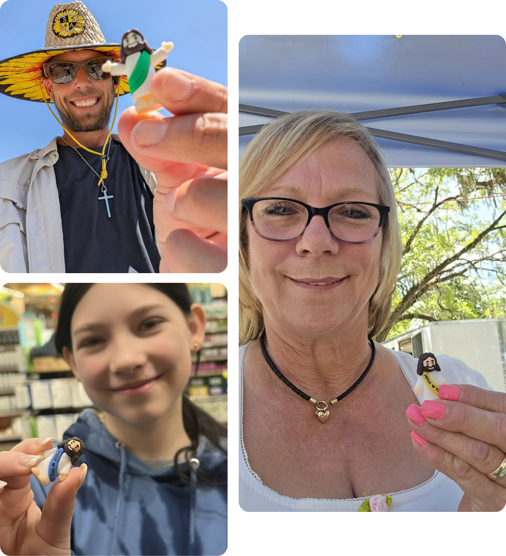 Our figures are made from soft, durable rubber. They’re lightweight, smooth to the touch, and made to be shared, gifted, and carried with you every day.